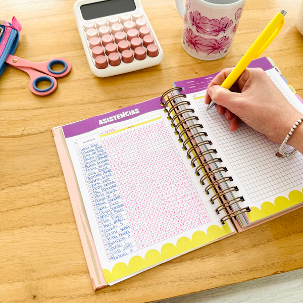 Esta agenda fue diseñada especialmente para docentes, con todo lo necesario para usar dentro y fuera del aula. ¡Perfecta para organizar cada detalle del día a día! ✨