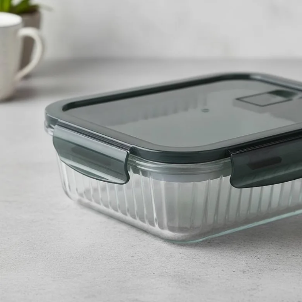 Este recipiente de vidrio de gran capacidad ofrece conservación segura y orden total gracias a su cierre hermético de alto rendimiento.