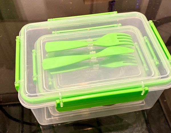 La mediana y grande incluyen cuchillo y tenedor, material plástico PP
