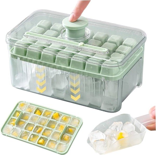 Se llena, se cierra y con solo presionar, los cubitos caen directamente al contenedor inferior, evitando tocar el hielo con las manos.