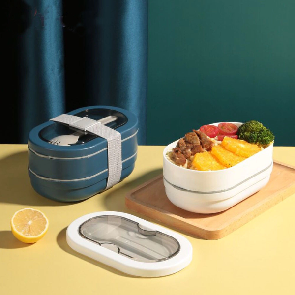 Lunchera doble, con tapa acrilica, incluye un tenedor/cuchara