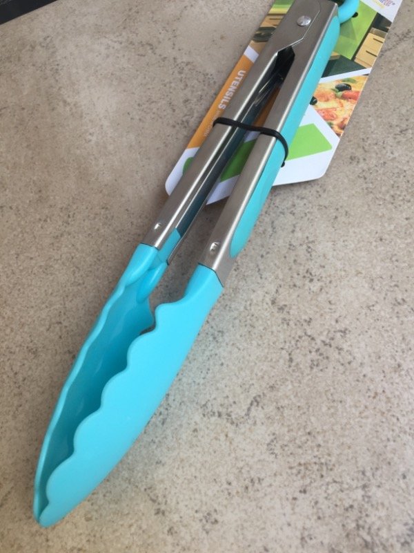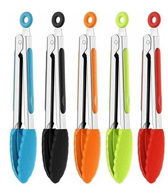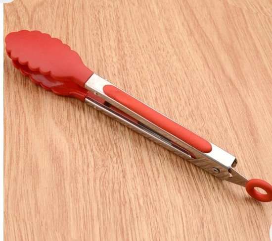 Pinza de acero inoxidable. En los extremos del mango tiene silicona.