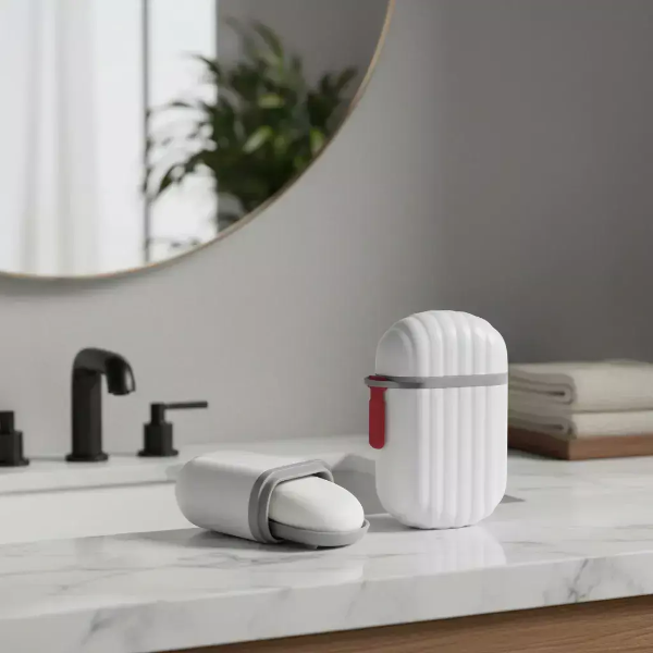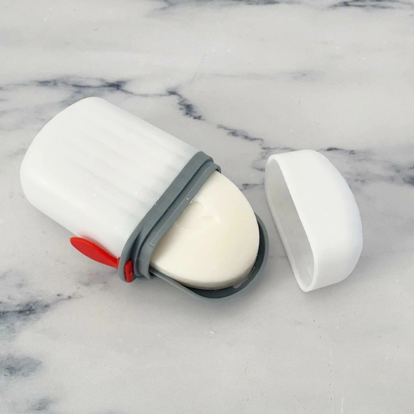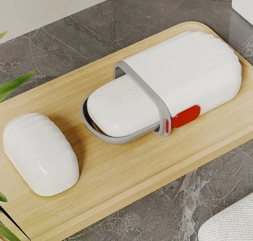 Jabonera con tapa y base escurridora, apoya jabon.
